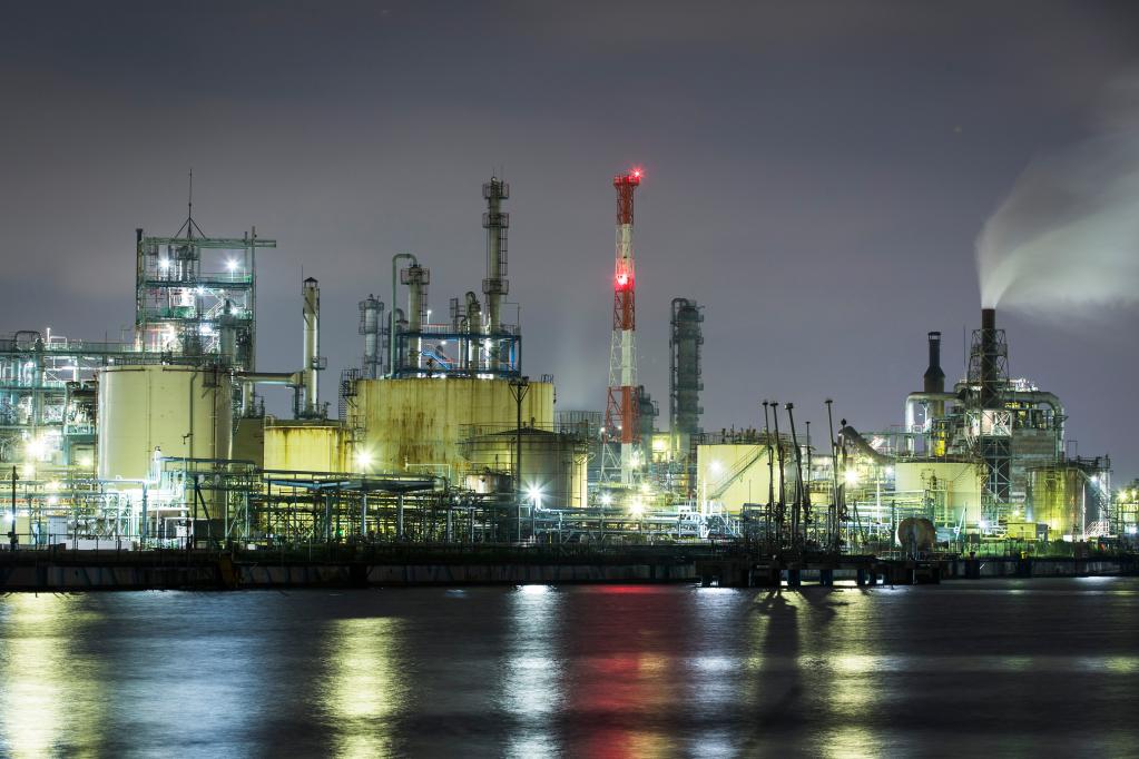 这是2020年6月29日在日本神奈川县川崎市拍摄的工厂夜景。(新华社记者杜潇逸摄)