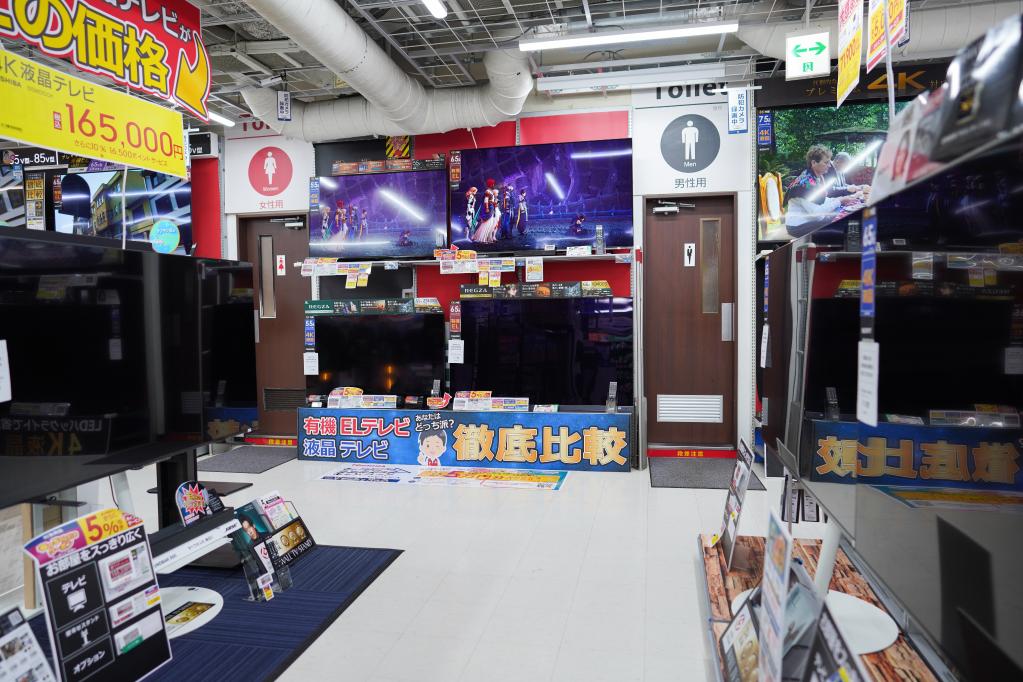 2022年3月22日,为节约用电,日本东京一家商场关闭一部分展示电视。(新华社记者张笑宇摄)