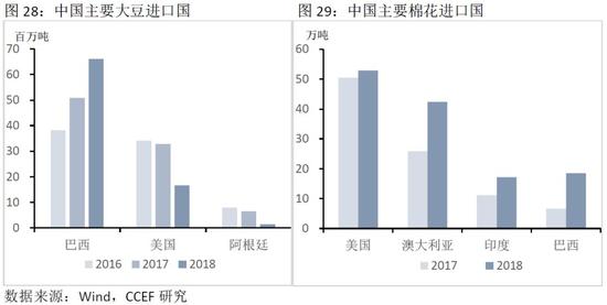 在保证国内主粮自主供应的前提下,进口的农产品将丰富国内供给,不会对国内农产品市场造成较大冲击。反而会在一定程度上补足自身大豆和棉花的生产弱势,降低基础生产成本,促进下游产业的发展。