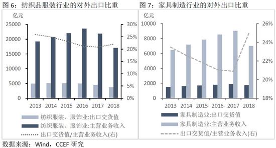 家具制造方面,中国的家具产量全球排名第一,近年来对出口的依赖度一直位于20%以上。2016年,中国家具出口527亿美元,其中有31%出口至美国。而美国当年家具进口318亿美元中54%来自中国。