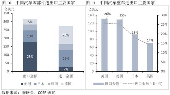 根据中国汽车贸易结构,若对美国实行零关税政策,则将有利于中国汽车零部件企业扩大对美国的出口规模。根据2017年贸易数据,美国是中国汽车零部件出口的第一大国,占中国汽车零部件出口总值的25%。而我国对美国汽车零部件进口依赖较小,主要进口地为德国、日本及韩国,对美进口比例仅为7%。若美国进口关税税率由2.5%下调至0,能够为中国汽车零部件出口释放一定的需求空间。
