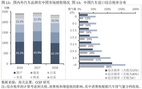 从汽车整车市场来看,我国汽车整车市场主要由国产车和合资车为组成,其中国产品牌的占有率在42%左右,德系(21%)和日系(19%)共占40%,美国进口车辆占中国汽车市场比重只有11%,即便大幅下调关税水平,对国内汽车市场影响也较小。此外,若考虑价格因素在内,2017年,我国从美国进口汽车的平均价格在26万元/辆左右(不含税),在进口关税为40%、15%、0%的情况下,进口汽车最终售价为45万元/辆、37万元/辆、32万元/辆。因此,对美汽车进口零关税将对国内市场中30万元左右的中高端合资车型造成一定的冲击,但对平均售价在10-20万元的国产整车市场影响很小。考虑到售后维修等因素,汽车零关税对中国市场的总体冲击有限。
